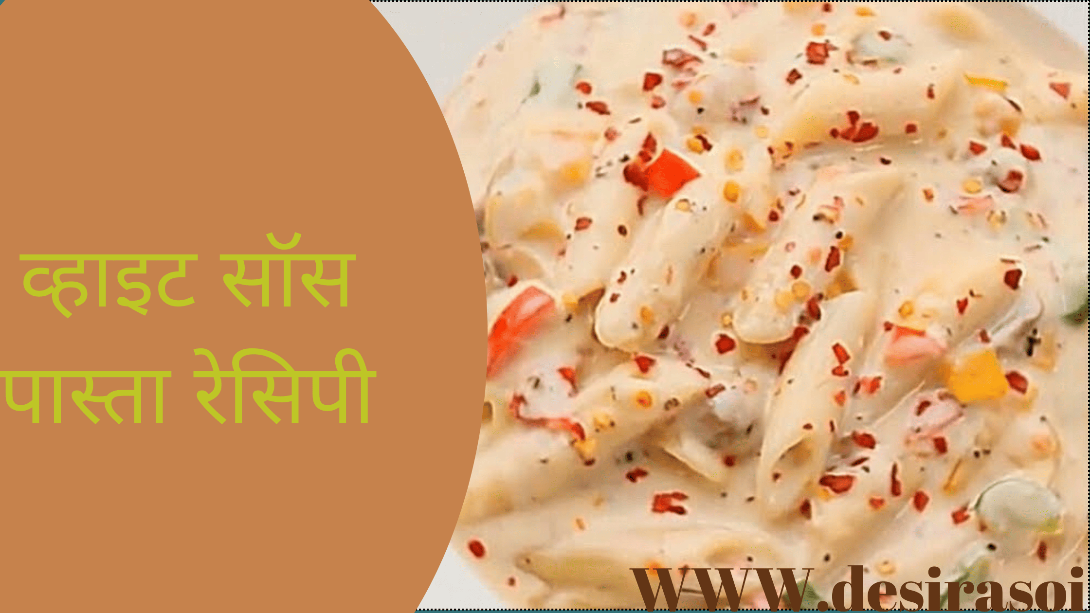 पास्ता एक बहुत स्वादिष्ट और हेल्दी रेसिपी है । पास्ता खाना लगभग सभी को बहुत पसंद होता ही है। बच्चे को तो खासकर यह बहुत पसन्द होती है।बच्चे तो बड़े प्यार से पास्ता, मैकरोनी जैसे स्नैक्स के रूप में खाना पसंद करते हैं।और आप चाहे तो इसे बच्चे के लंच बॉक्स में भी दे सकते है वह बहुत मजे से खाएंगे, और चाहेगा की लंच बॉक्स में रोज यही मिले. बच्चों को पास्ता बहुत पसंद तो होती ही है। लेकिन , पास्ता बच्चे को कभी-कभार ही देनी चाहिए, क्योंकि पास्ता मैदे से बनाई जाती है।इसलिए मैदा सेहत के लिए अच्छा नहीं होता है.पास्ता बहुत तरह से बनाई जाती है आज हम आपको इटैलियन पास्ता बनाने की विधि बताते हैं। यह बहुत टेस्टि रेसिपी हैं आप भी एक बार व्हाइट सॉस पास्ता बना कर देखे। यह आपको भी बहुत पसंद आएगी ये क्रीमी होने के साथ-साथ सेहतमंद होता है। व्हाइट सॉस पास्ता (white sauce pasta) में अधिक मात्रा में सब्जियां पड़ती हैं, जिसकी वजह से ये काफी हेल्दी और सेहतमंद होता है। आप भी इस रेसिपी को घर में आसानी से बना सकते हैं। इसे बनाना बहुत आसान है। हमारे दिए गए सुझाव के अनुसार इस रेसिपी को आप घर पर ही आसानी से बना सकते हैं।